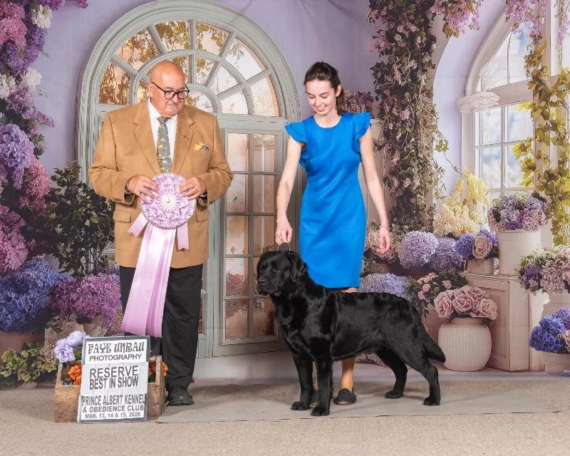 Tucker has started off the 2026 show season in style! He took 6/6 Best of Breed honors at the Crocus Kennel Club show in Brandon, Manitoba, along with 4 x 3rd in group placings. This vaults Tucker to #1 Labrador in Canada in February!!! This boy loves to show. He loves to please his handler Sarah.